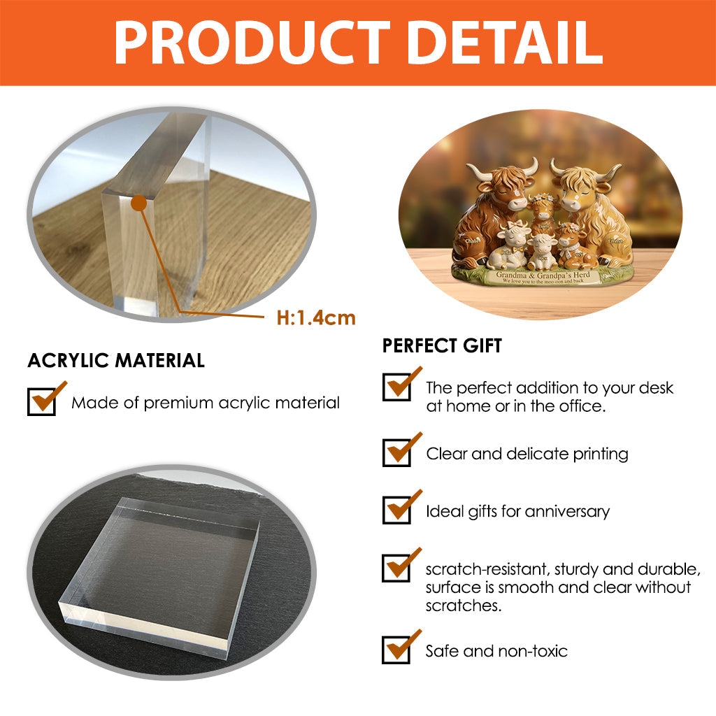 Grandma And Grandpa's Herd Highland Cow Family - Personalized Grandma Custom Shaped Acrylic Plaque