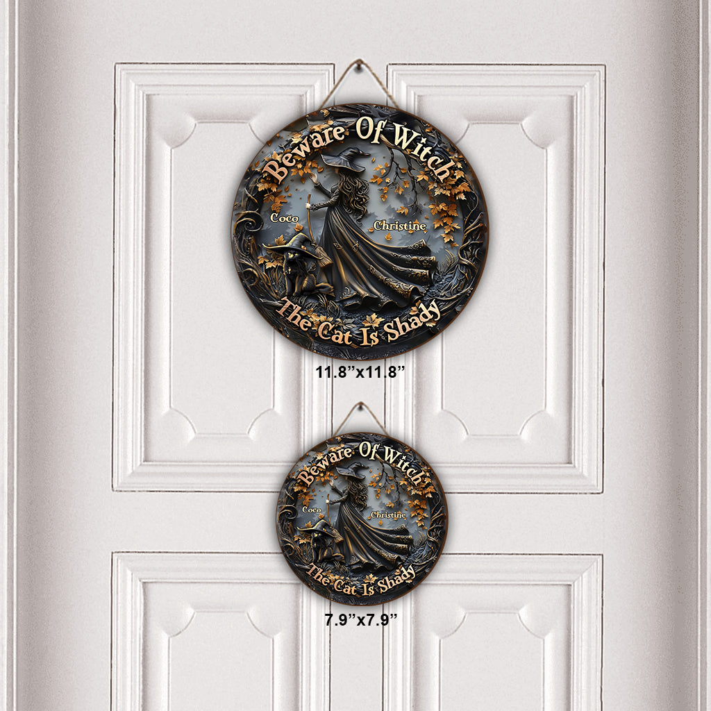 Halloween Is Better With A Cat - Personalized Black Cat Round Wood Sign