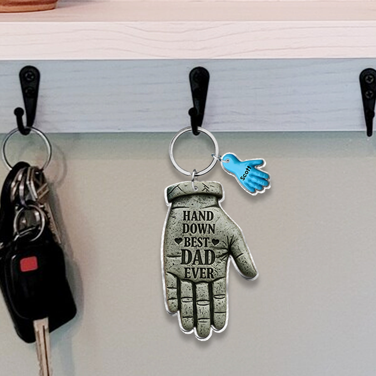 Hand Down Best Dad Ever - Personalized Father Keychain with Charms