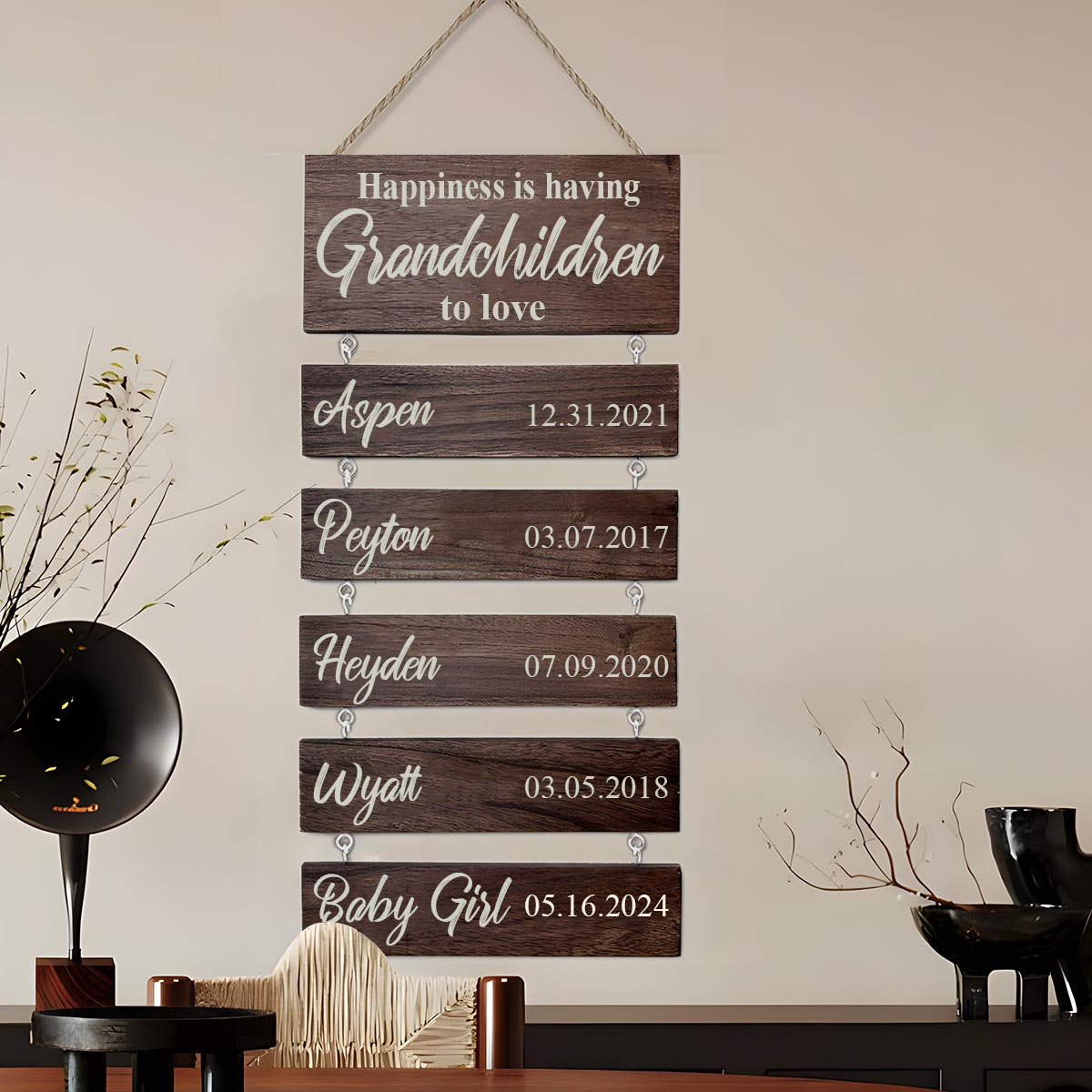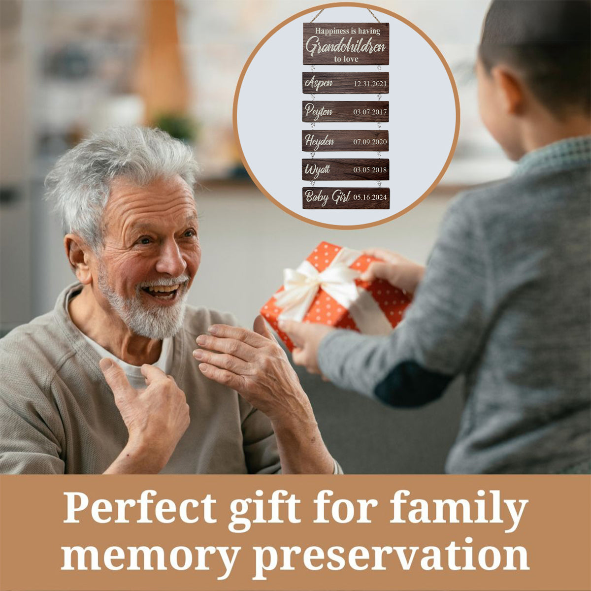 This unique custom gift will light up your mom or grandma's eyes with their grandchildren's names and birthdates. It can also be added to as your family grows, making it a perfect gift for Mother's Day! A sentimental gift that will be cherished year after year, perfect for grandparents to memorialize their growing family with names of their grandchildren and great-grandchildren. It's also ideal for parents. Each wood sign is made to order, crafted from premium wood, carefully cut and hand-sanded.