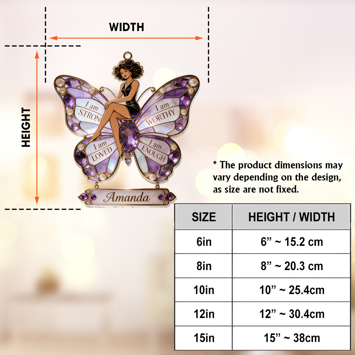 I am Strong, Worthy, Loved, Enough - Personalized Self Love Window Hanging Suncatcher Ornament