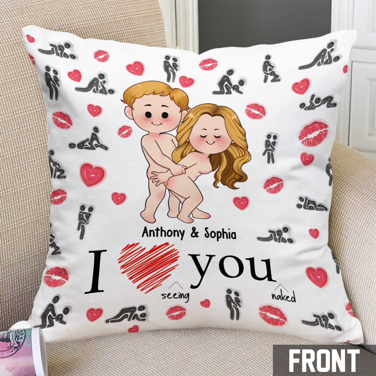 I Love Seeing You Naughty - Personalized Couple Throw Pillow