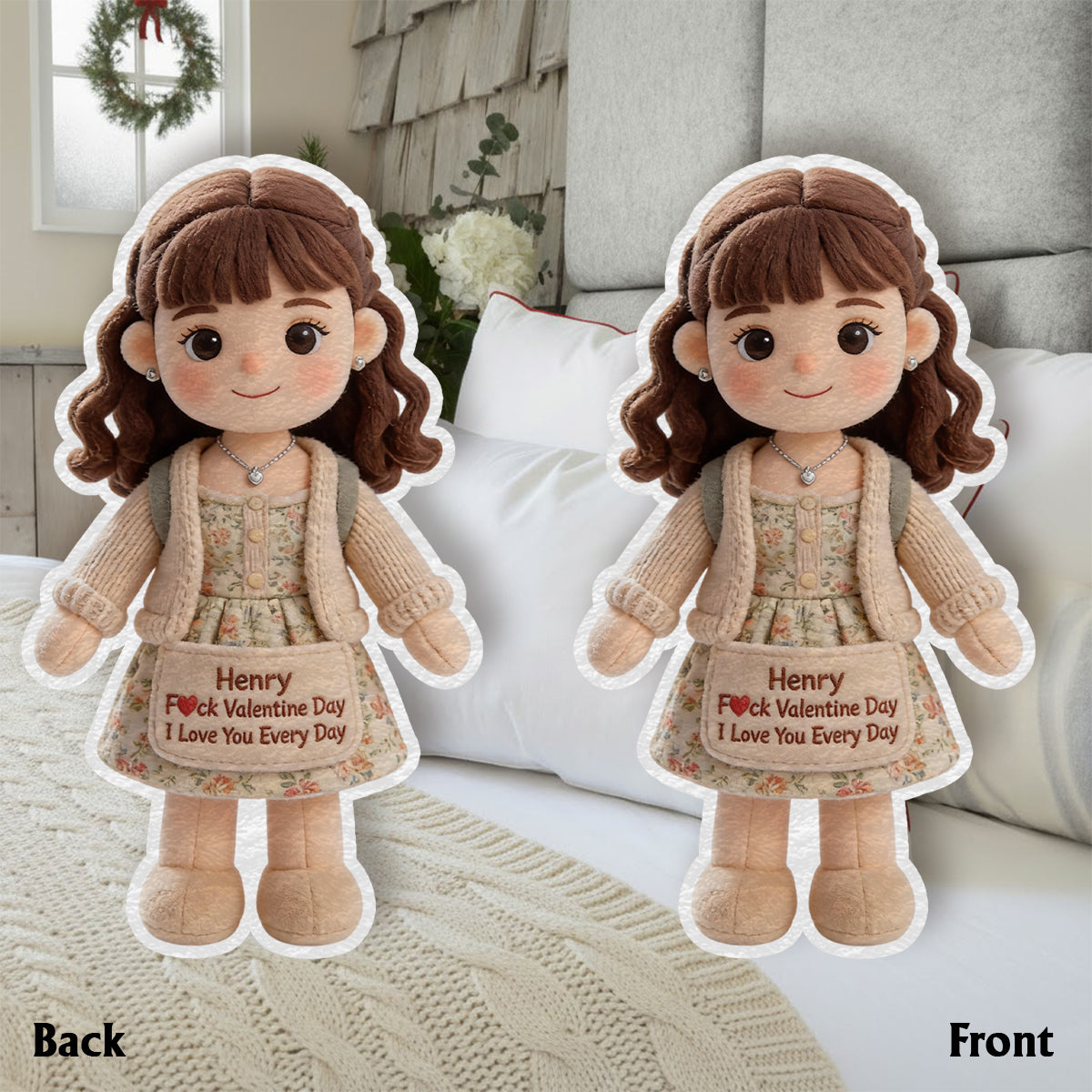 I Love You Everyday - Personalized Couple Faux Fur Shaped Pillow