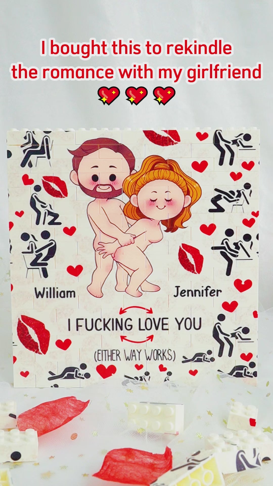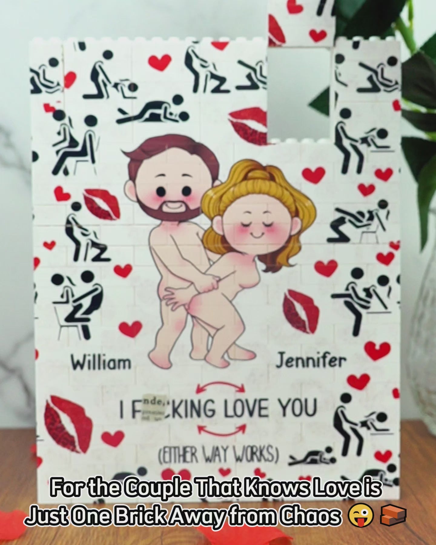 I love you - Personalized Couple Vertical Rectangle Building Brick Blocks Printed On Both Sides