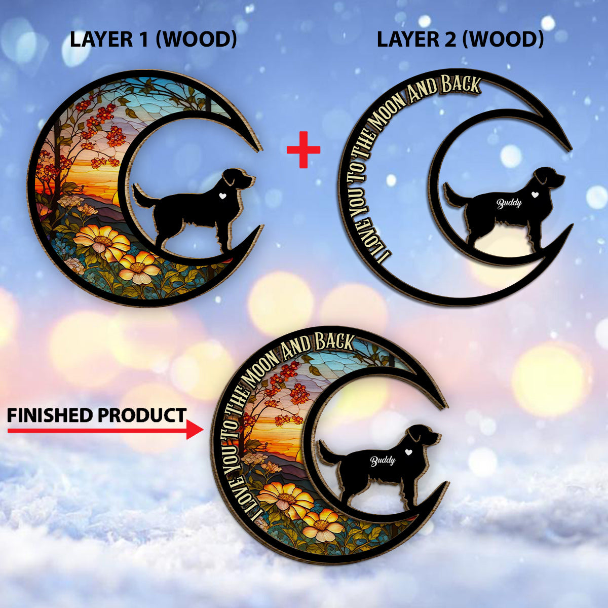 I Love You To The Moon And Back - Gift for dog lovers - Personalized 2 Layered Wood Sign / Wood Plaque