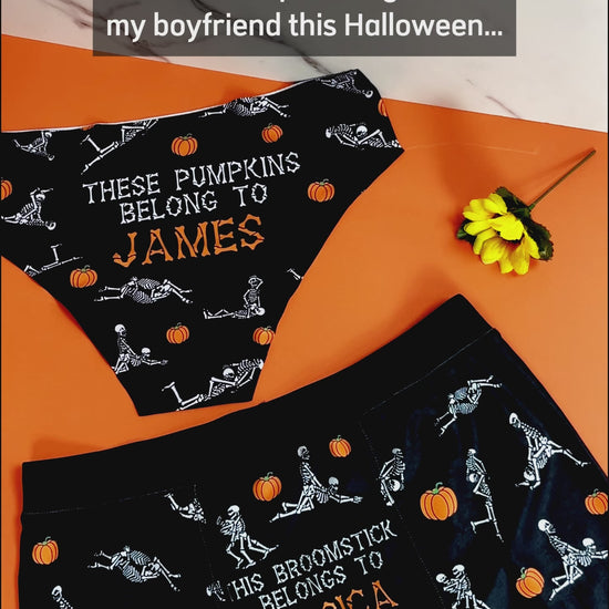 I Love Your Pumpkins & Broomstick - Personalized Couple Women Briefs & Men Boxer Briefs