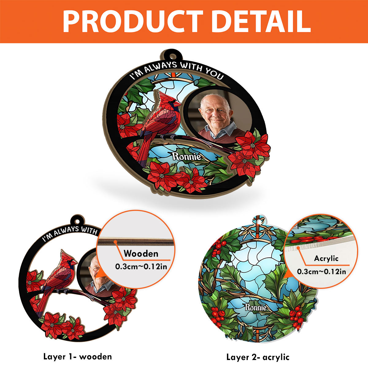 I'm Always With You - Personalized Memorial 2 Layered Window Hanging Suncatcher