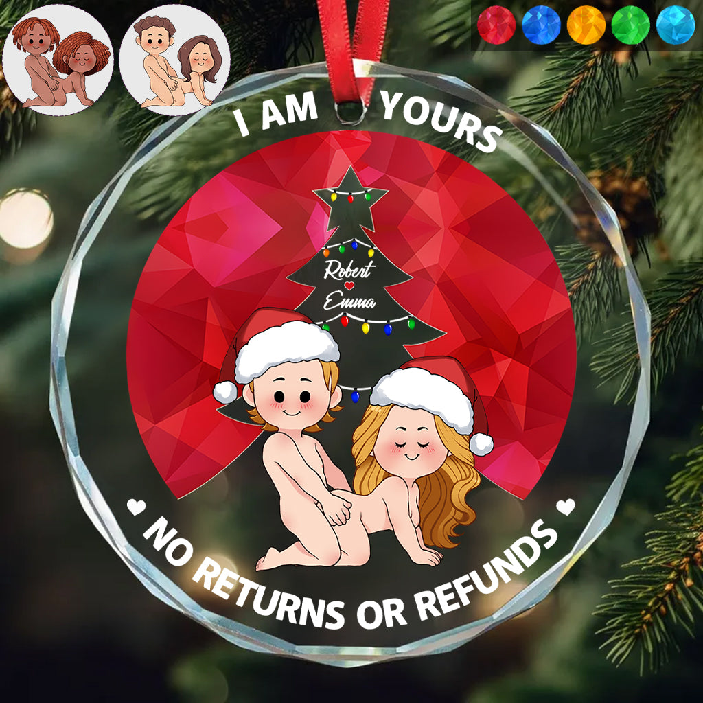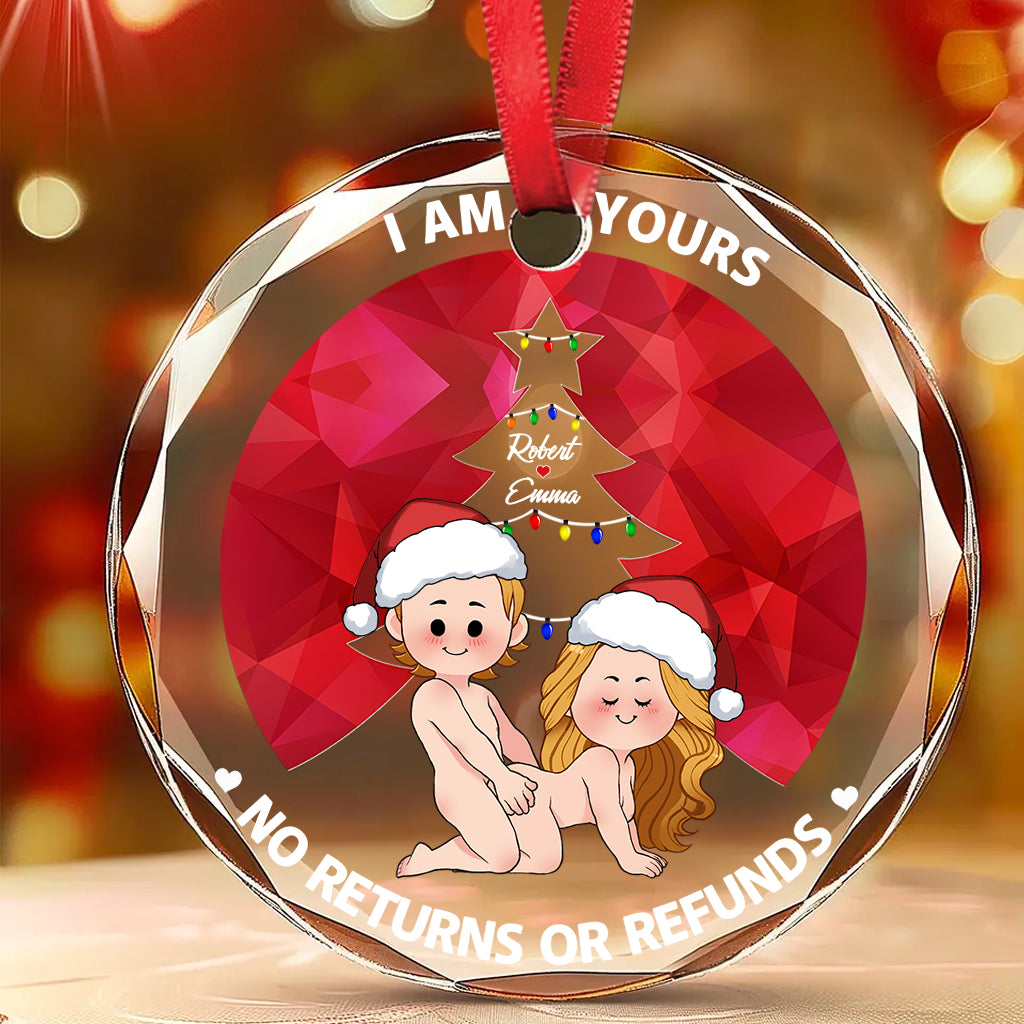I'm Yours No Returns Or Refunds - Personalized Couple Round Shaped Glass Ornament