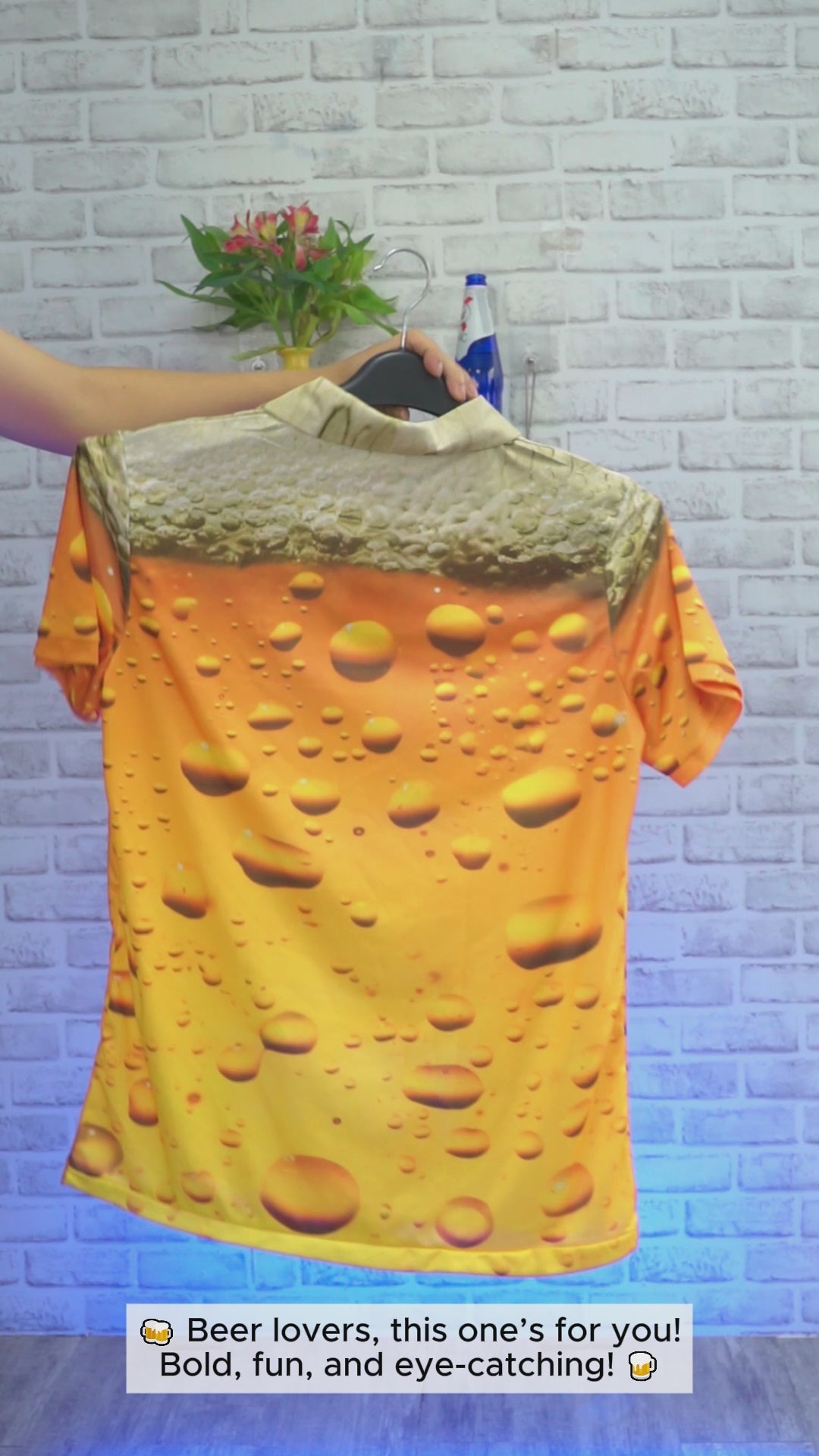 - The custom print polo shirt has 3 transparent buttons and a simple wide collar.
