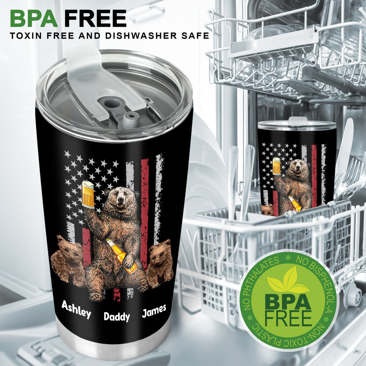 - BPA-free materials make this tumbler dishwasher safe for easy cleaning at home.