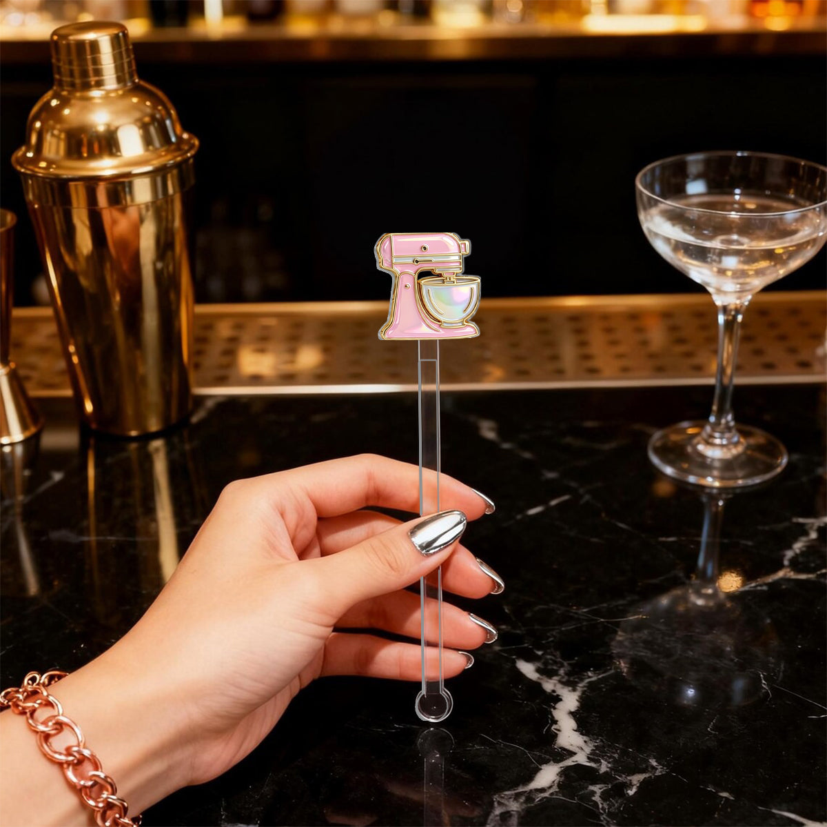 - A ceramic mug holds the warmth of your drink, wrapping your hands in gentle comfort. The acrylic stirrer brings the drink to life with every swirl, adding movement, clarity, and a touch of sparkle. Together, they turn an ordinary sip into a beautifully complete experience.