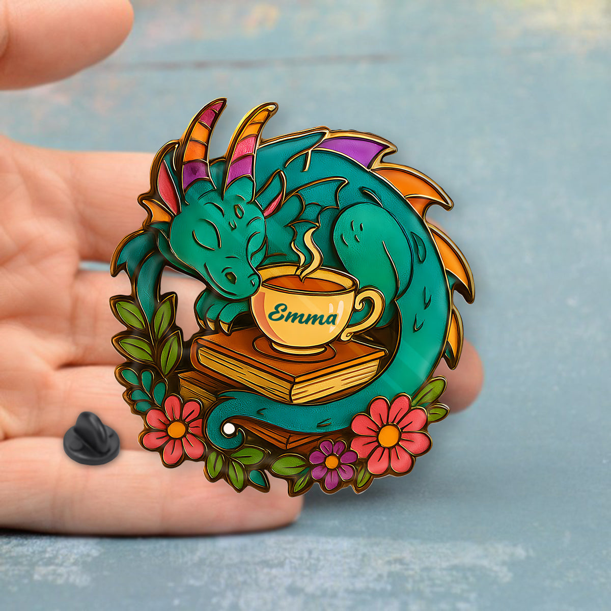 - Material: Clear acrylic top layer with a printed enamel design underneath