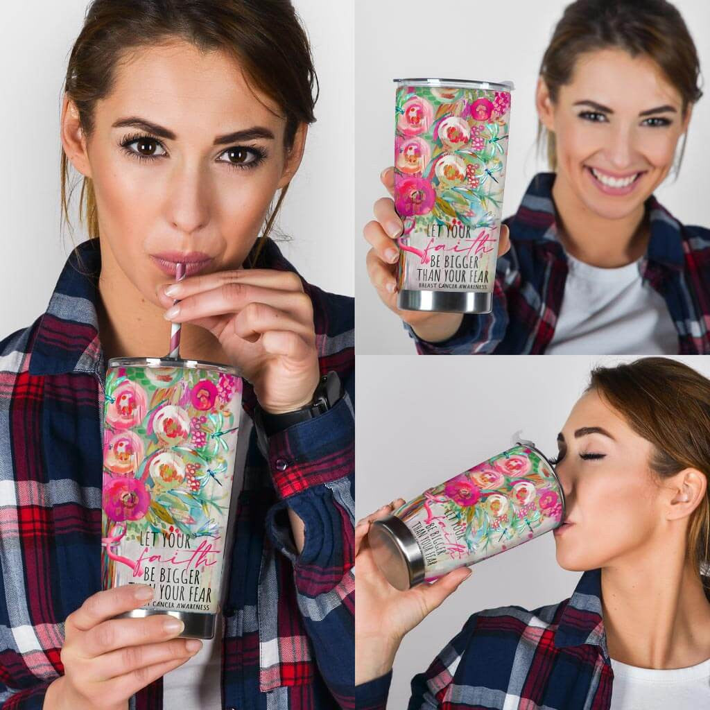 Let Your Faith Be Bigger Than Your Fear - Breast Cancer Awareness Tumbler 0822