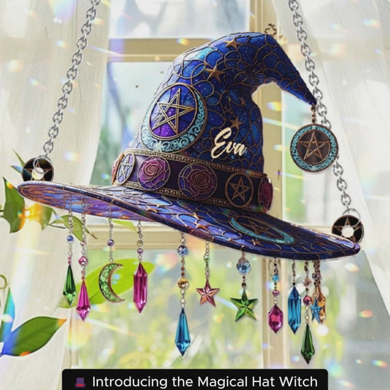 Magical Hat - Personalized Witch Window Hanging Suncatcher Ornament