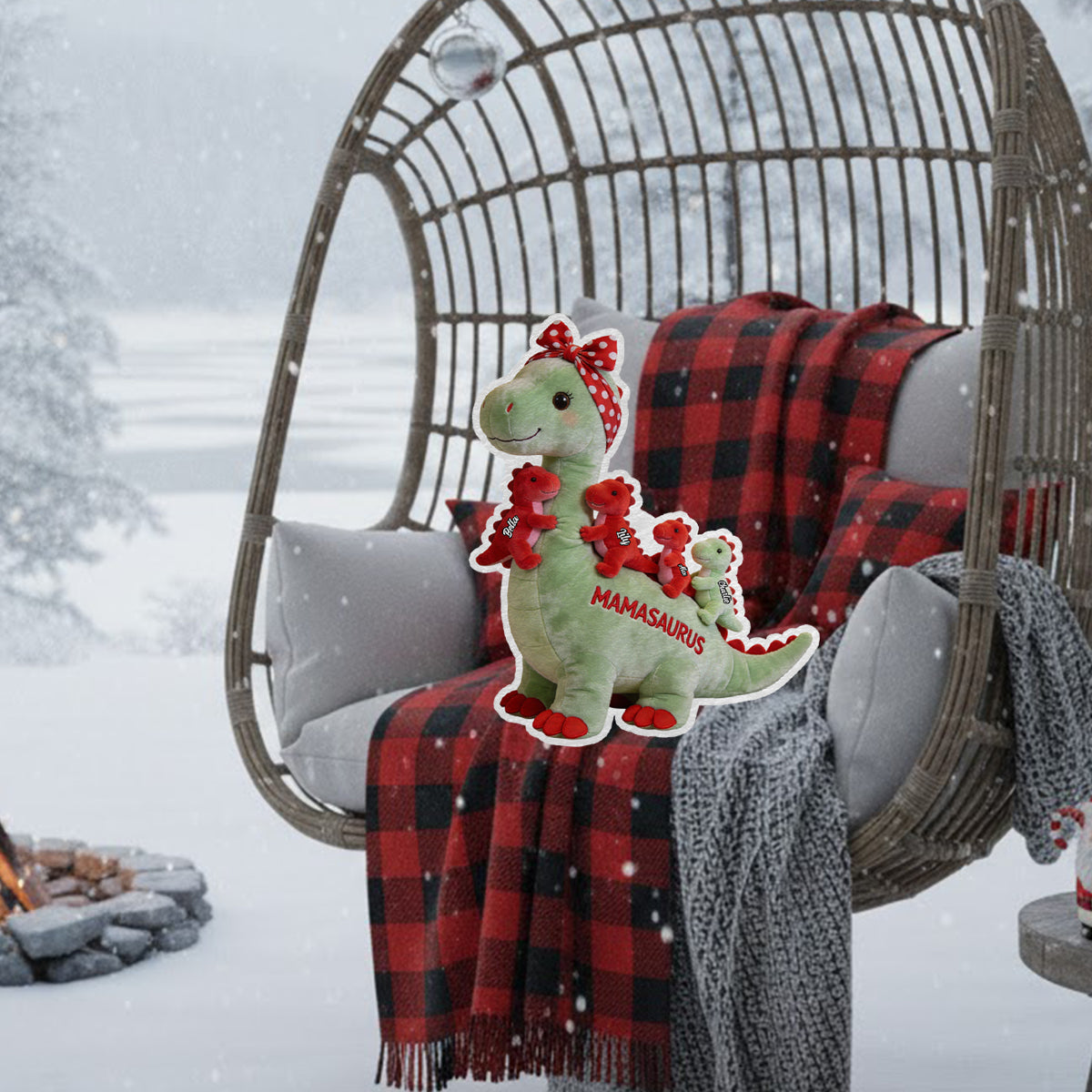 Mamasaurus Gift For Mom Grandma - Personalized Mother Faux Fur Shaped Pillow