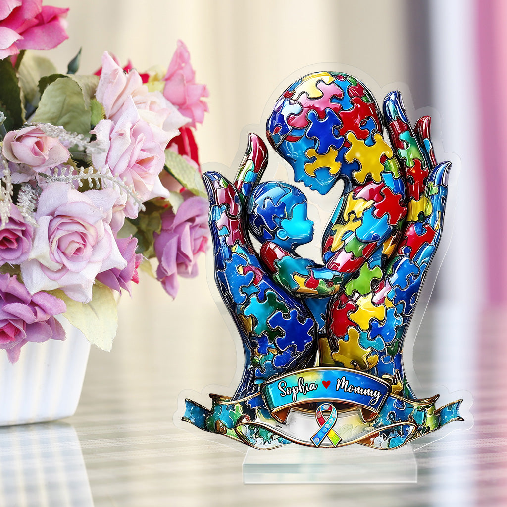 Mom And Kid - Personalized Autism Awareness Custom Shaped Acrylic Plaque