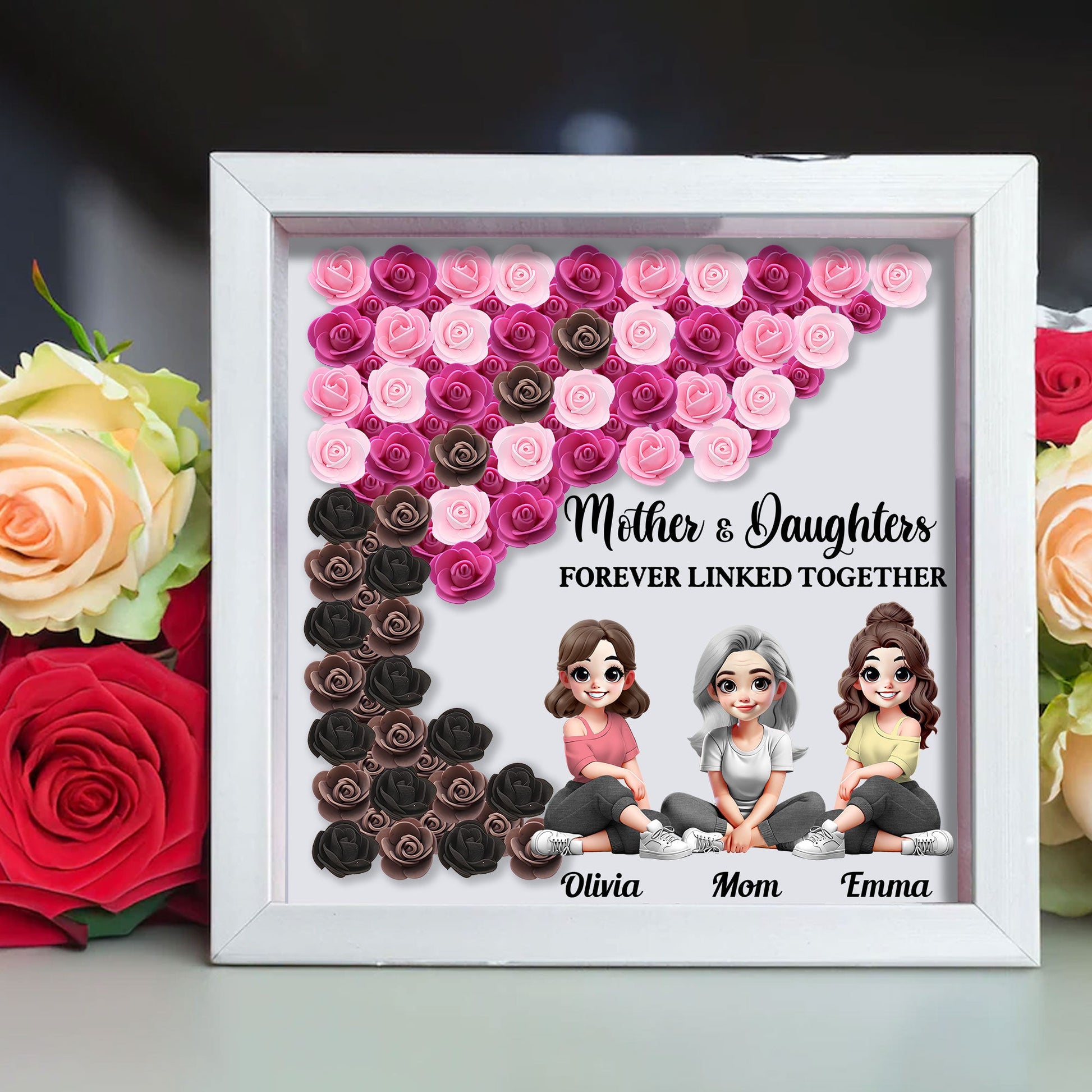 Mother and Daughter Forever Linked Together - Personalized Mother Custom Shaped Flower Shadow Box