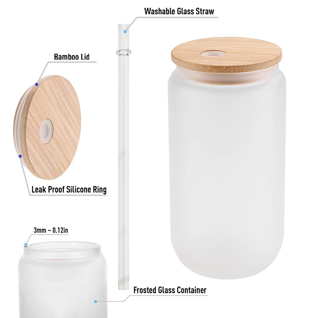 - Our Can Glass is made with high-quality glass material and accompanied by a convenient hard plastic straw and a wooden lid with convenient hold for straw