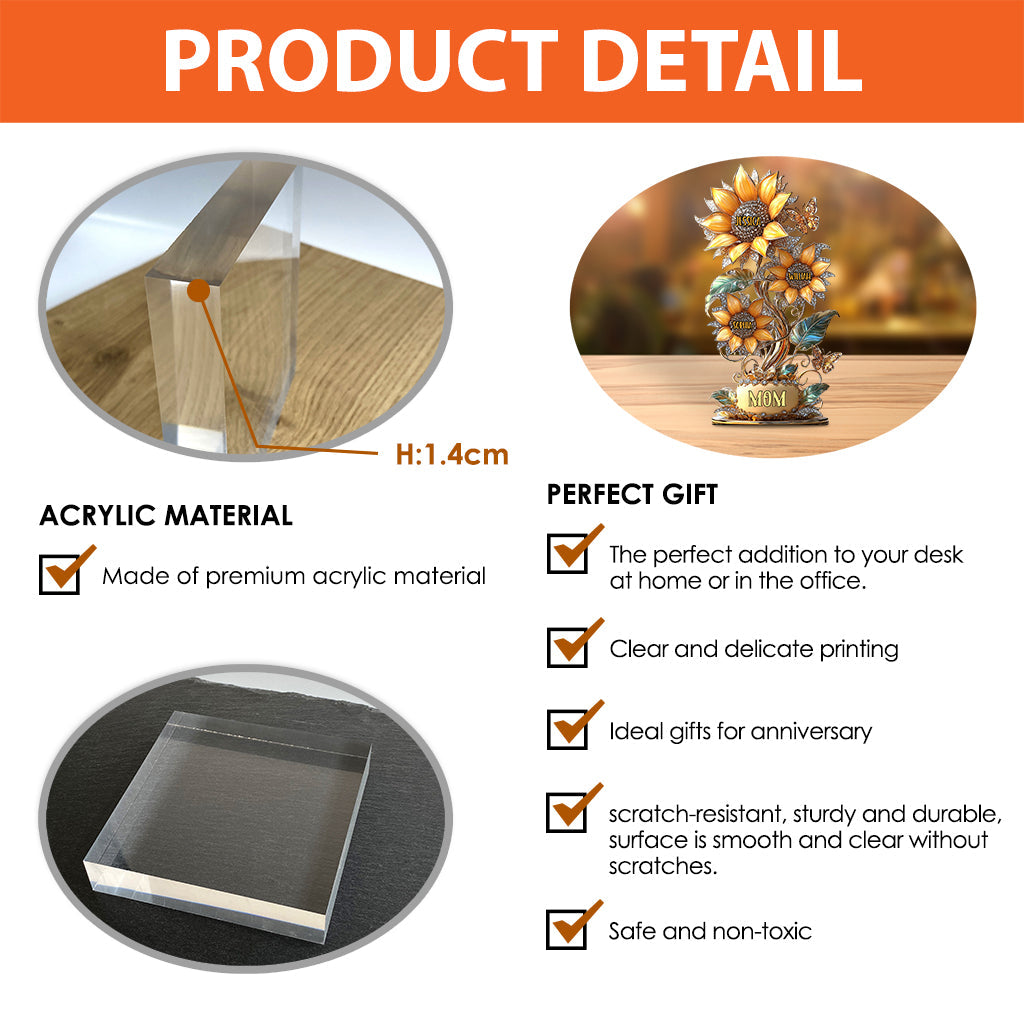 My Sunflower Garden Gift For Mom, Grandma - Personalized Mother Custom Shaped Acrylic Plaque
