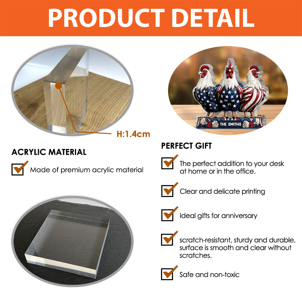 Patriotic Chicken - Personalized Chicken Custom Shaped Acrylic Plaque