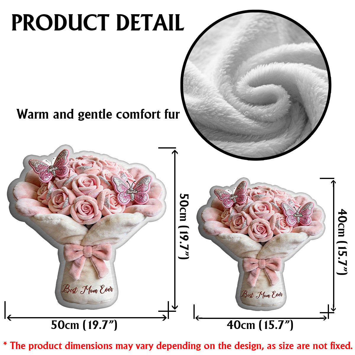 Perfect Gift For Mom, Grandma Beautiful Bouquet - Personalized Mother Faux Fur Shaped Pillow