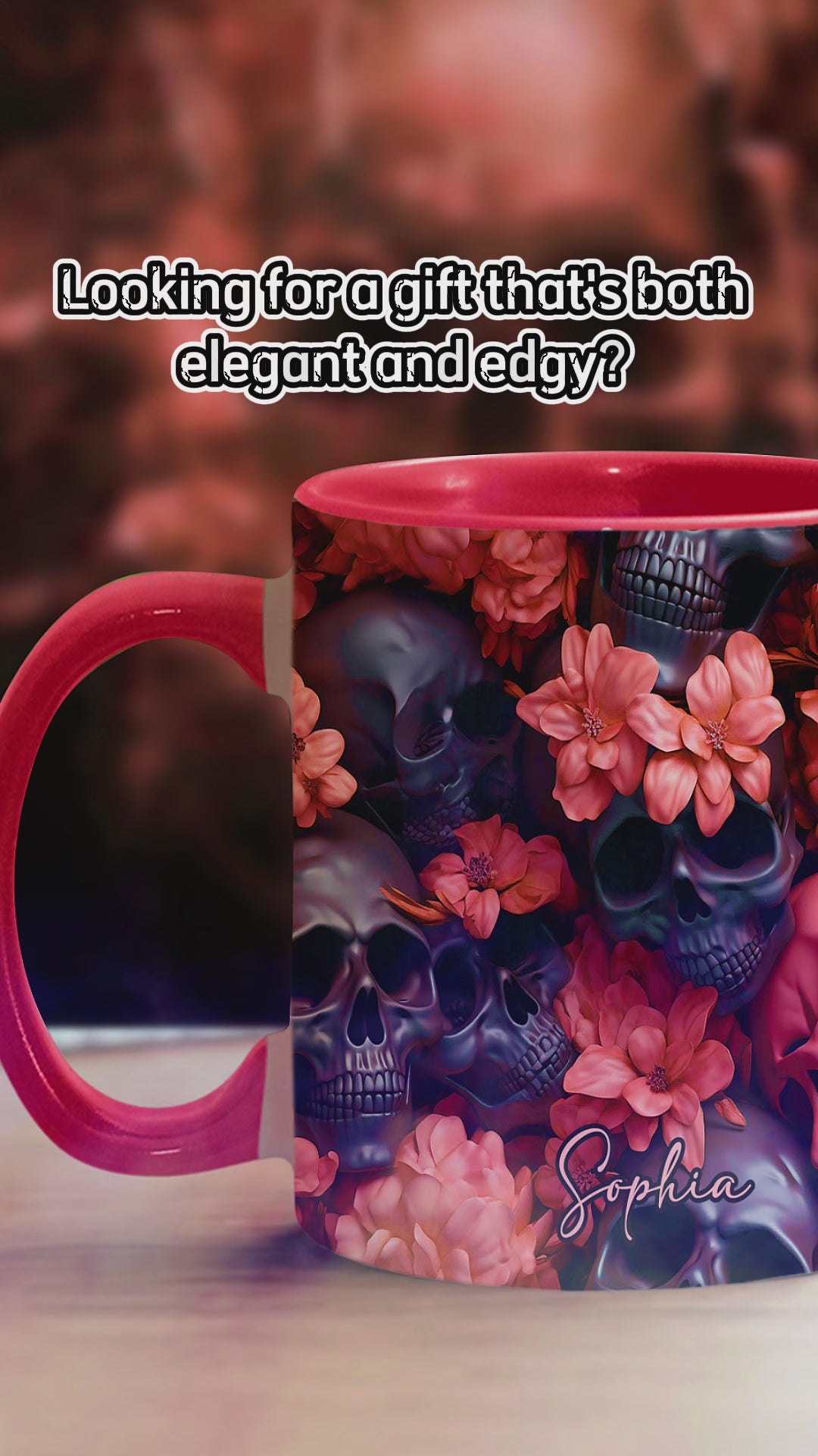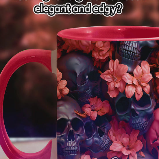 Pink Flowers Black Skulls - Personalized Skull Accent Mug