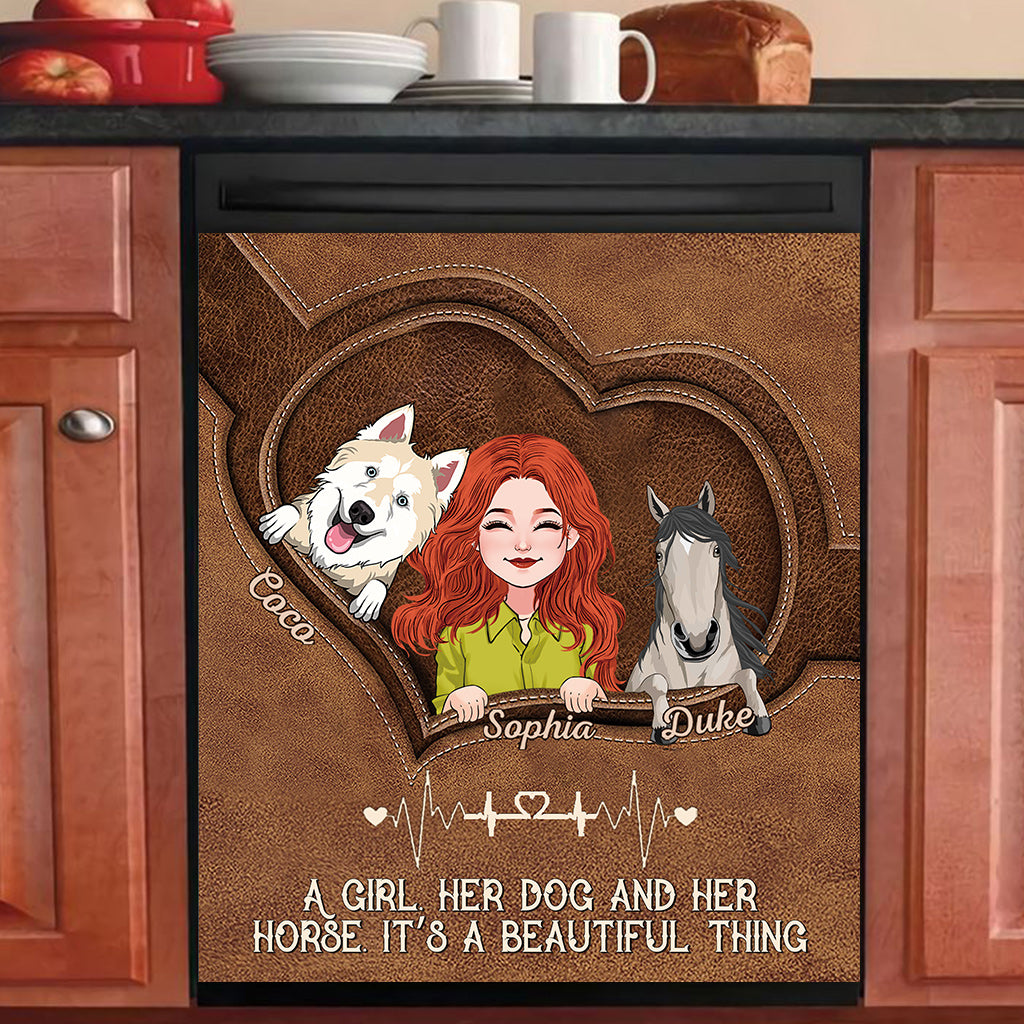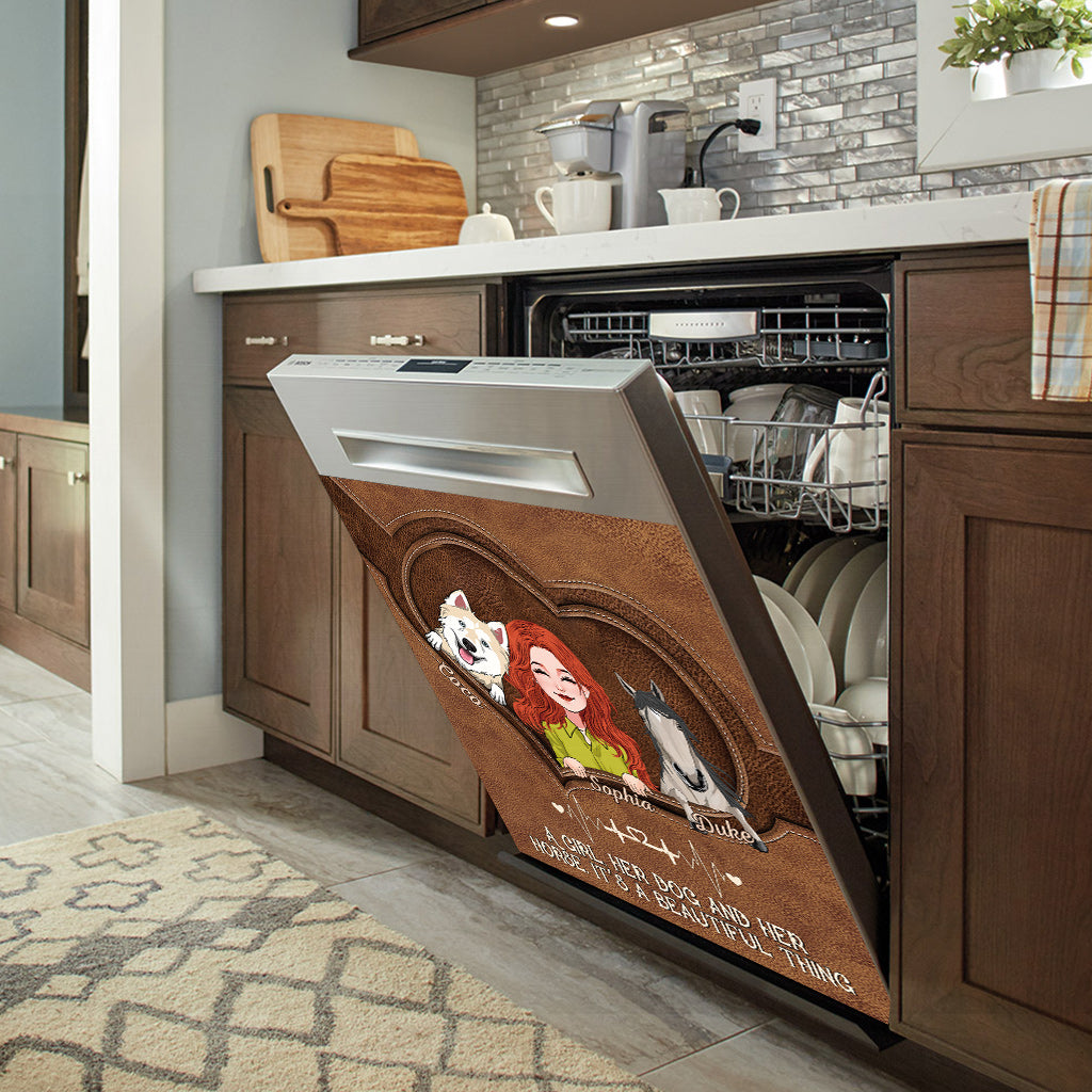 - Printed magnetic dishwasher covers hide scratches, dents, or other unsightly marks on your dishwasher. No harsh, instantly, effortlessly and affordably,waterproof. Easy to install-just need trim to size and stick. Easy to remove- no sticky residue.This dishwasher sticker can be reused, you can change to a different style at any time.