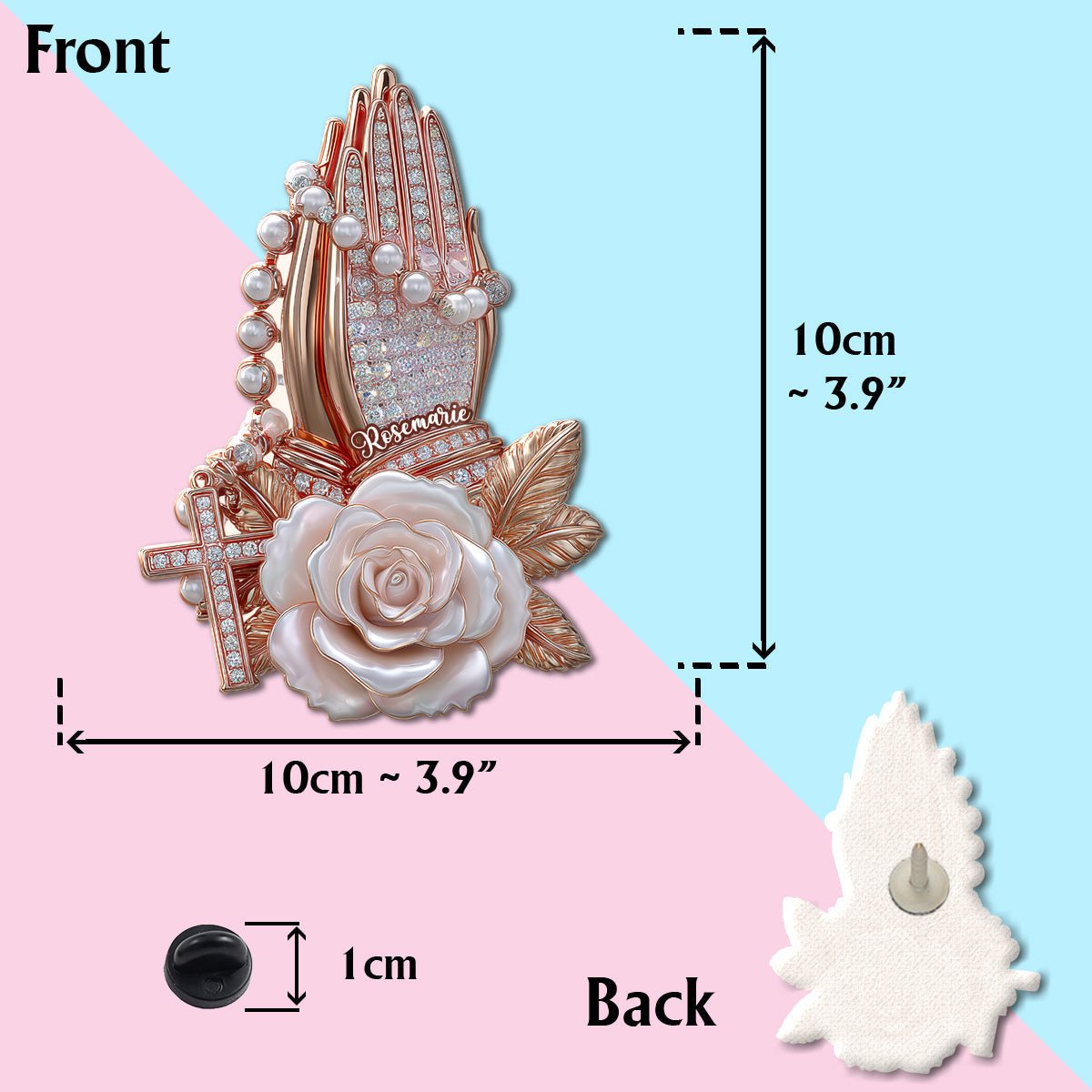 Praying Hands With Roses - Personalized Christian Pin