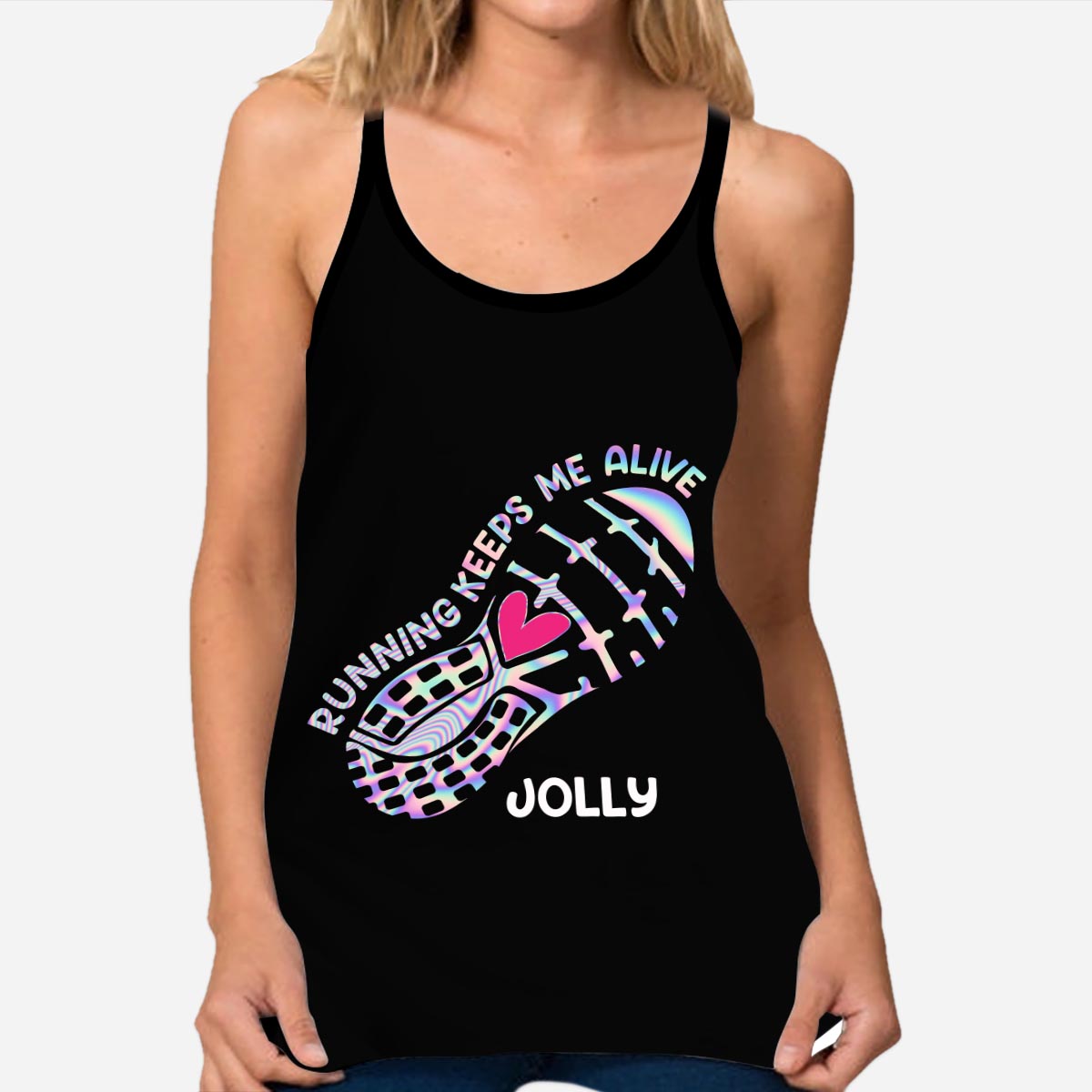 Running Keeps Me Alive - Personalized Running Cross Tank Top and Leggings