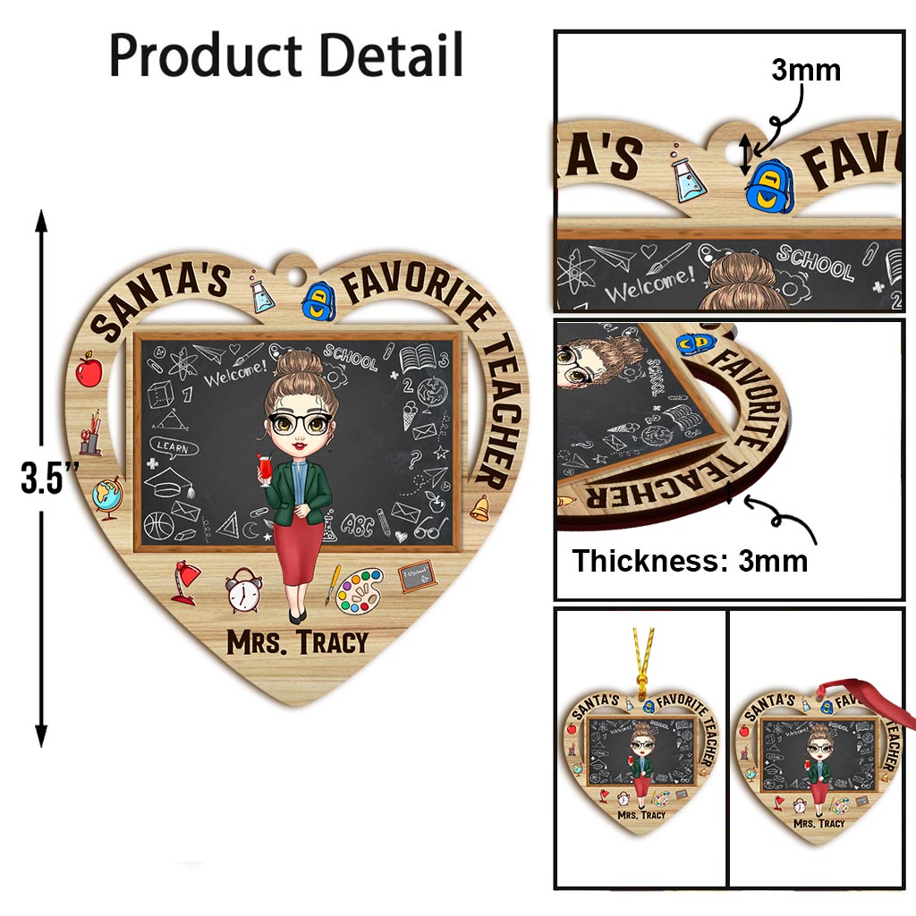 Santa's Favorite Teacher - Personalized Christmas Teacher Ornament (Printed On Both Sides)