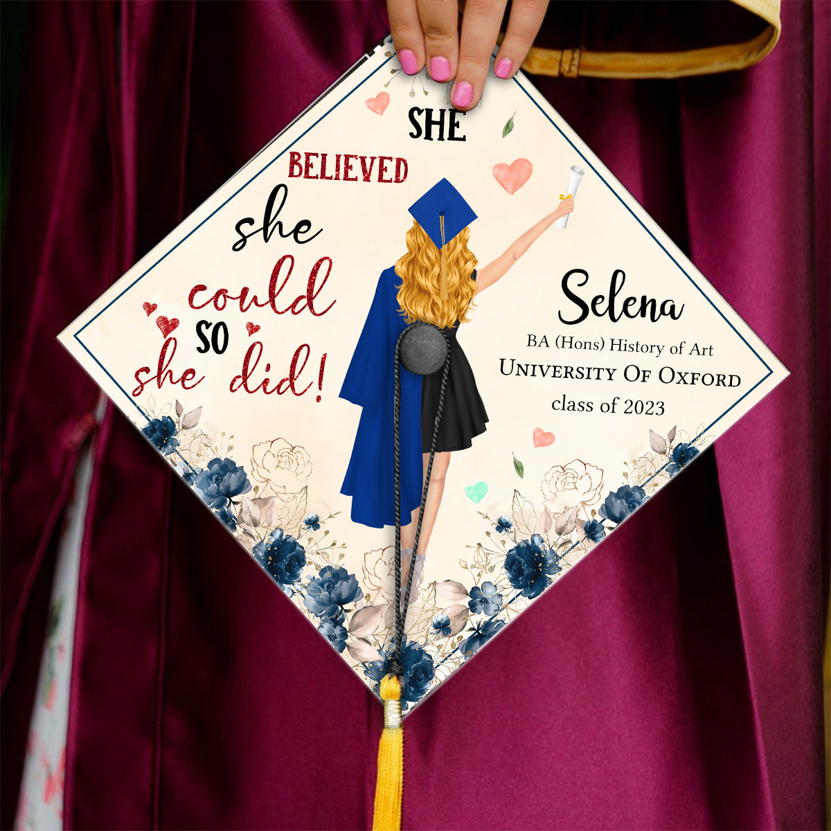 She Believed She Could So She Did - Personalized Graduation Cap Topper