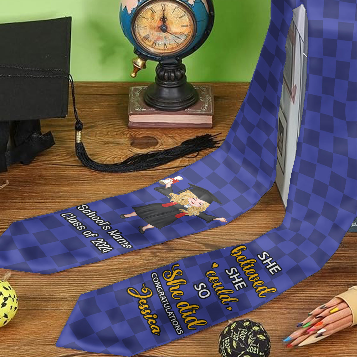 Everyone has their own unique style, and with our customizable option, you can create a gift that is as special as the person receiving it. Add a name, year, and customize the graduation stoles to make your gift truly stand out.