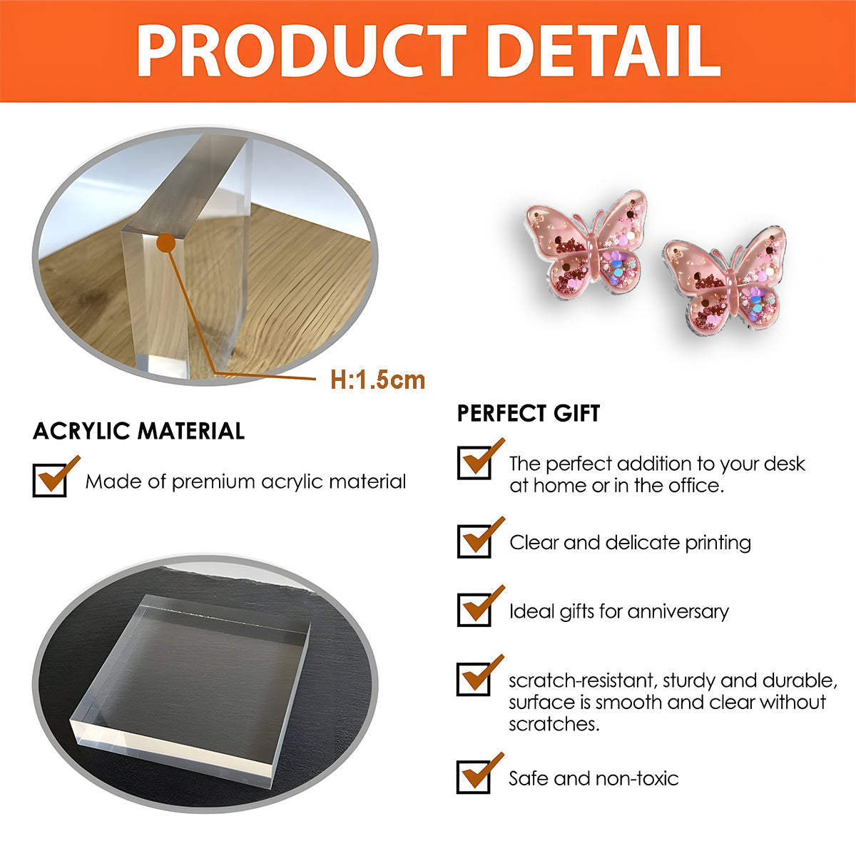 The acrylic plaque is crafted with a thick, sturdy structure and smooth edges, giving it a premium feel while remaining compact and easy to display. The accompanying card is designed in a fixed size to perfectly complement the plaque, making it suitable for gifting, mailing, or personal keepsakes.