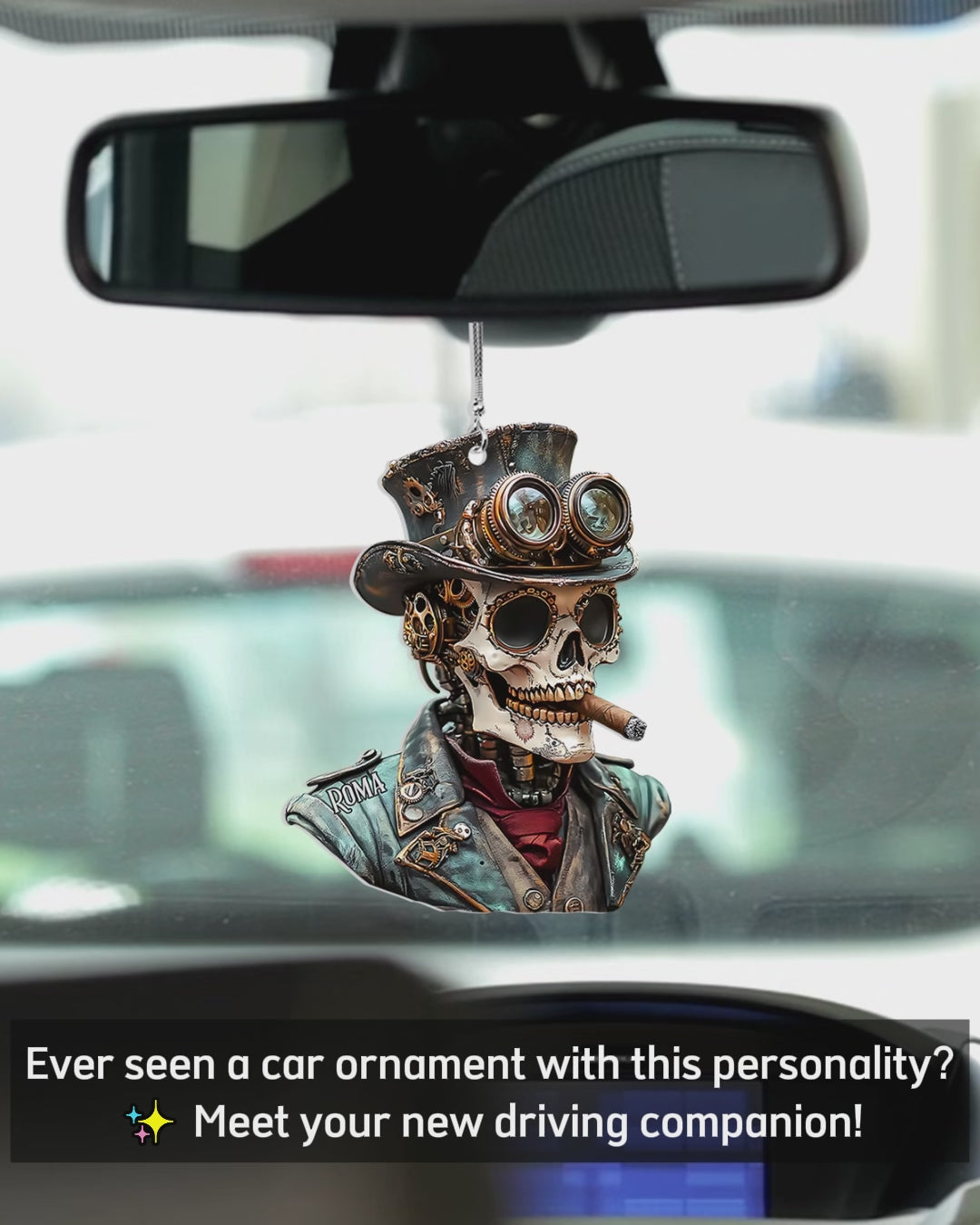 Steampunk Skull - Personalized Skull Car Ornament