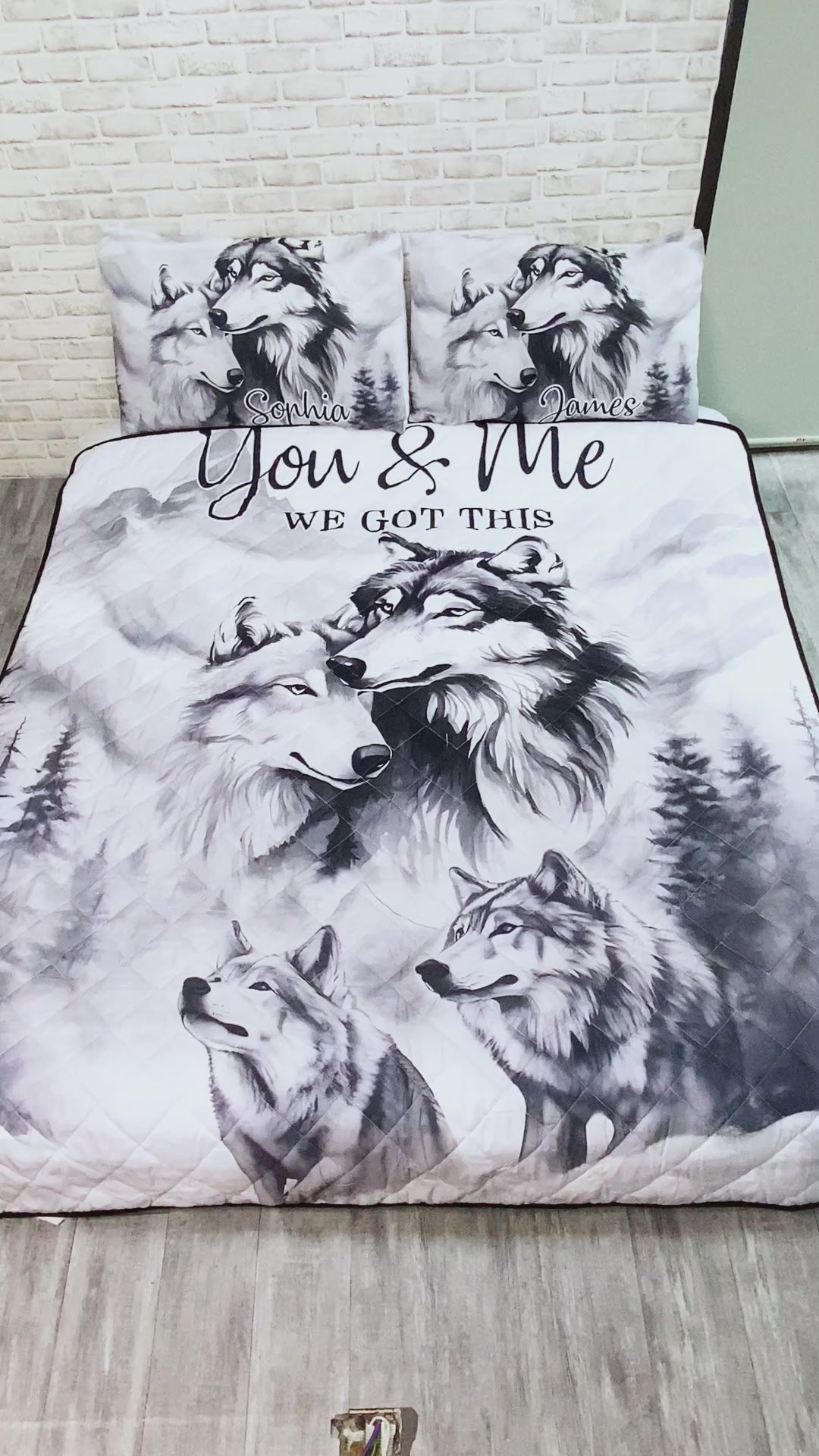 Strong Couple - Personalized Wolf Quilt Set