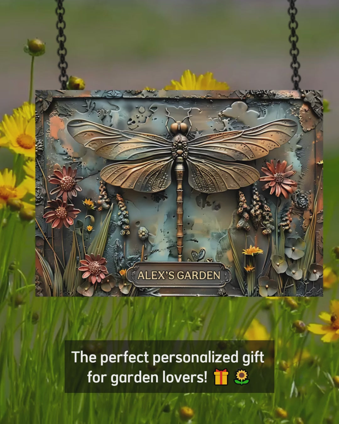 Stunning Dragonfly - Personalized Gardening Rectangle Metal Sign