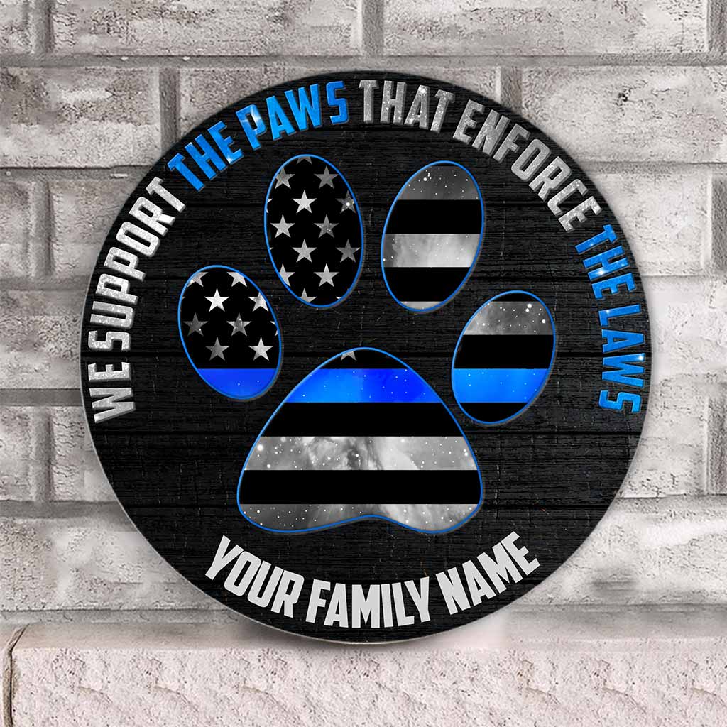 Support The Paws - Police Personalized Round Wood Sign