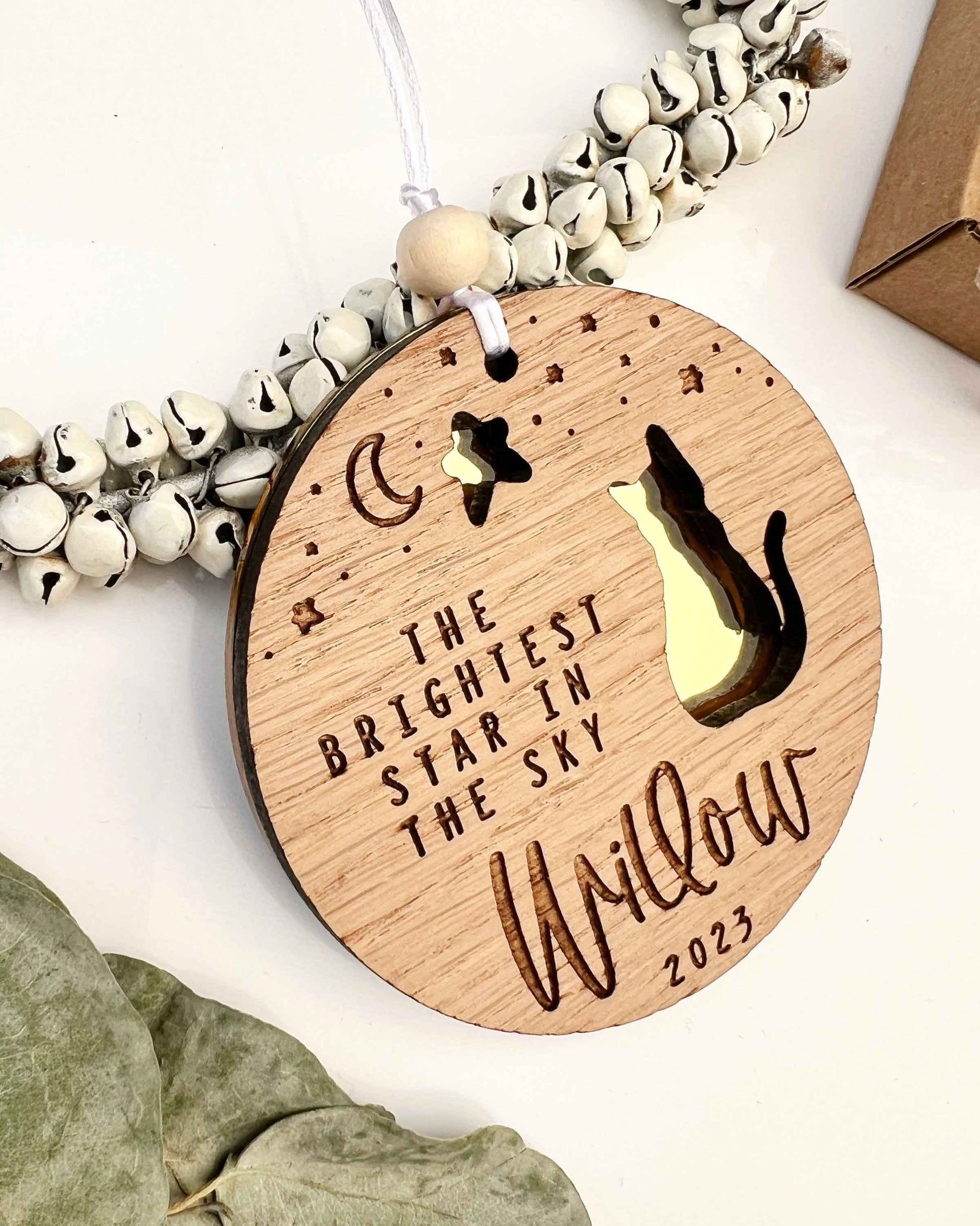 The Brightest Star In The Sky - Personalized Cat Mirrored Wooden Ornament