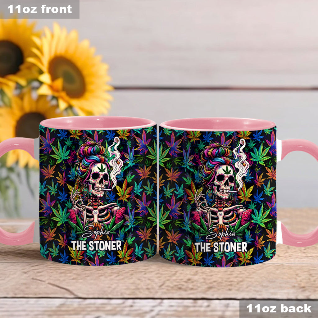 - High quality ceramic mug with two-tone rim, interior, & handle