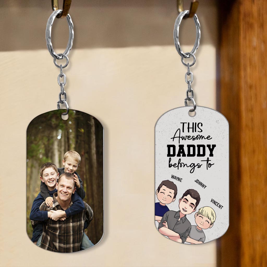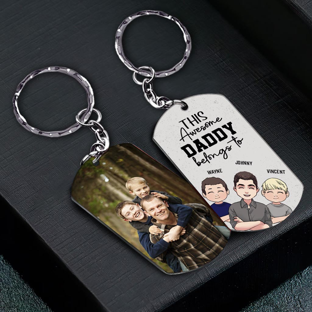 This Awesome Dad Belongs - Gift for dad, uncle, brother, grandpa - Personalized Stainless Steel Keychain