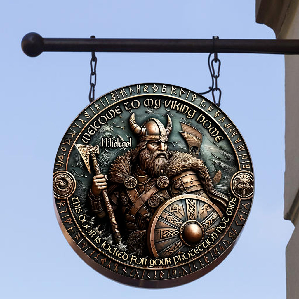 This Door Is Locked For Your Protection Not Mine - Personalized Viking Round Metal Sign