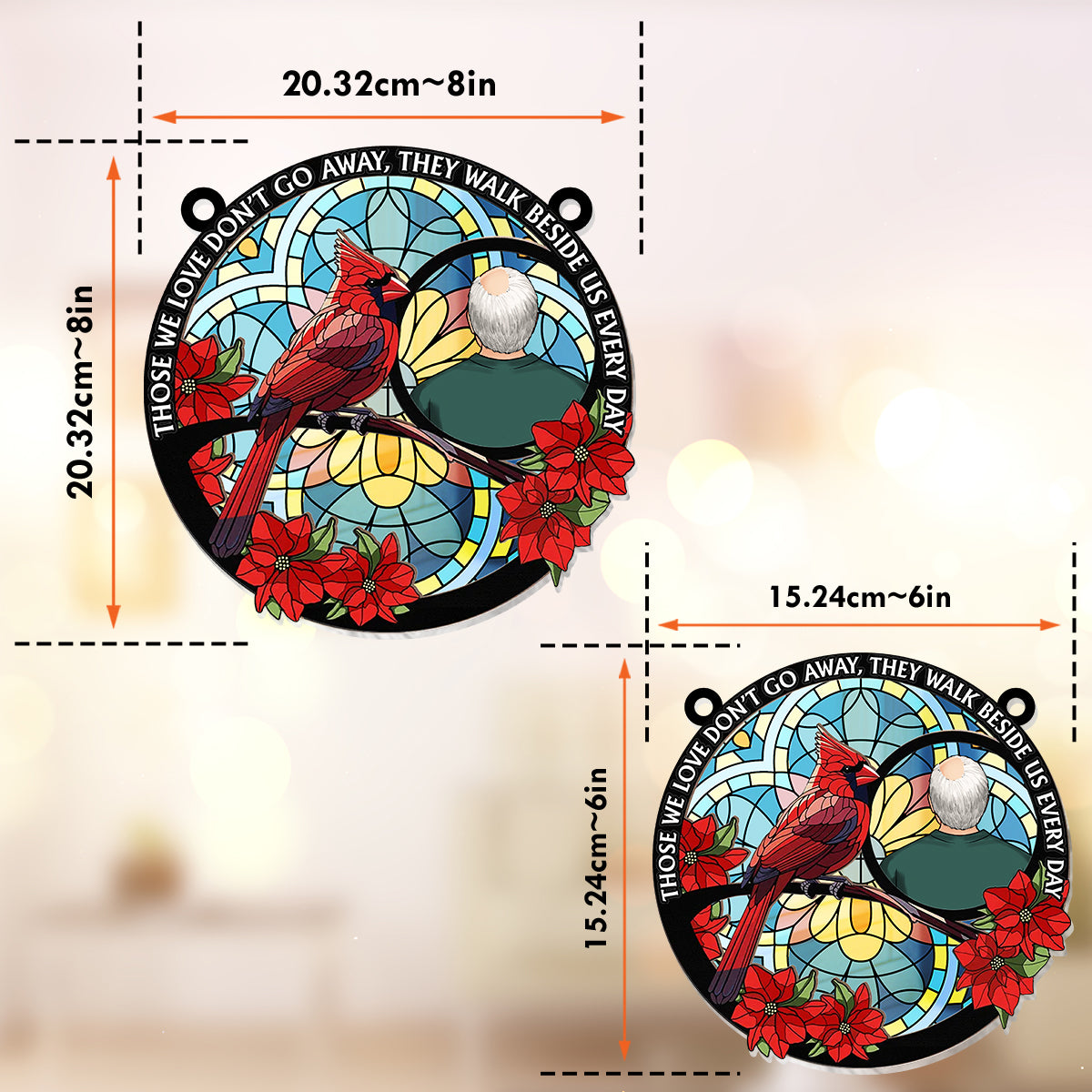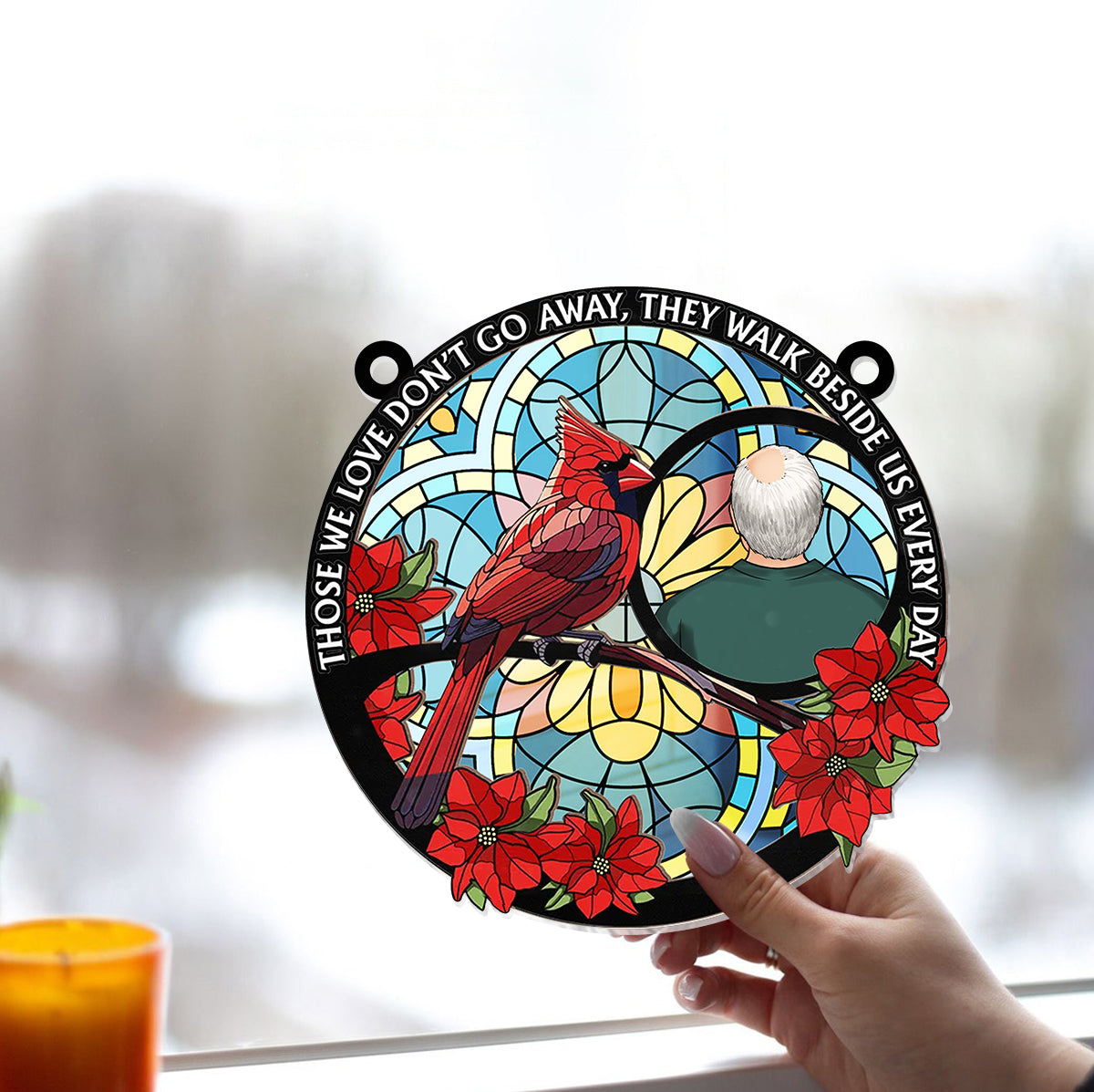 Those We Love Don't Go Away Cardinal - Personalized Memorial Window Hanging Suncatcher Ornament