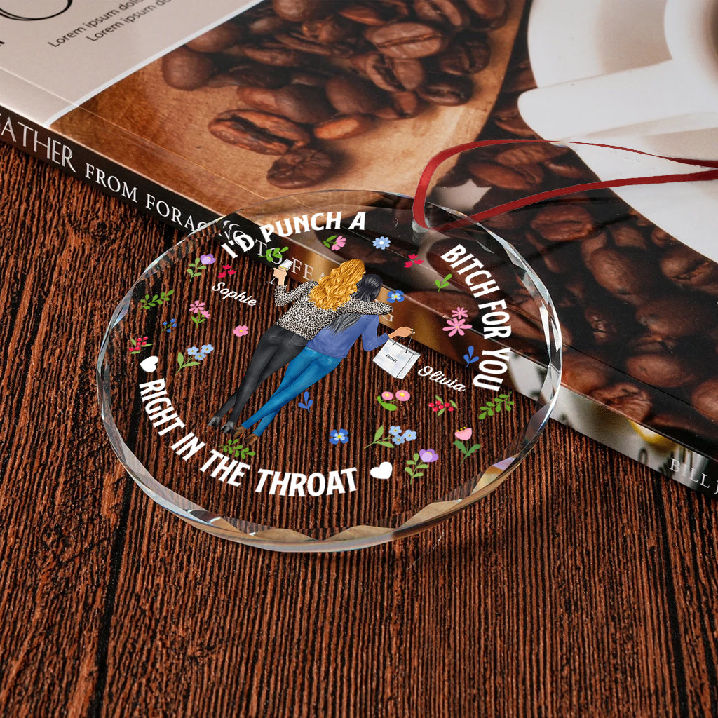 Two Women Holding Drinks - Personalized Bestie Round Shaped Glass Ornament
