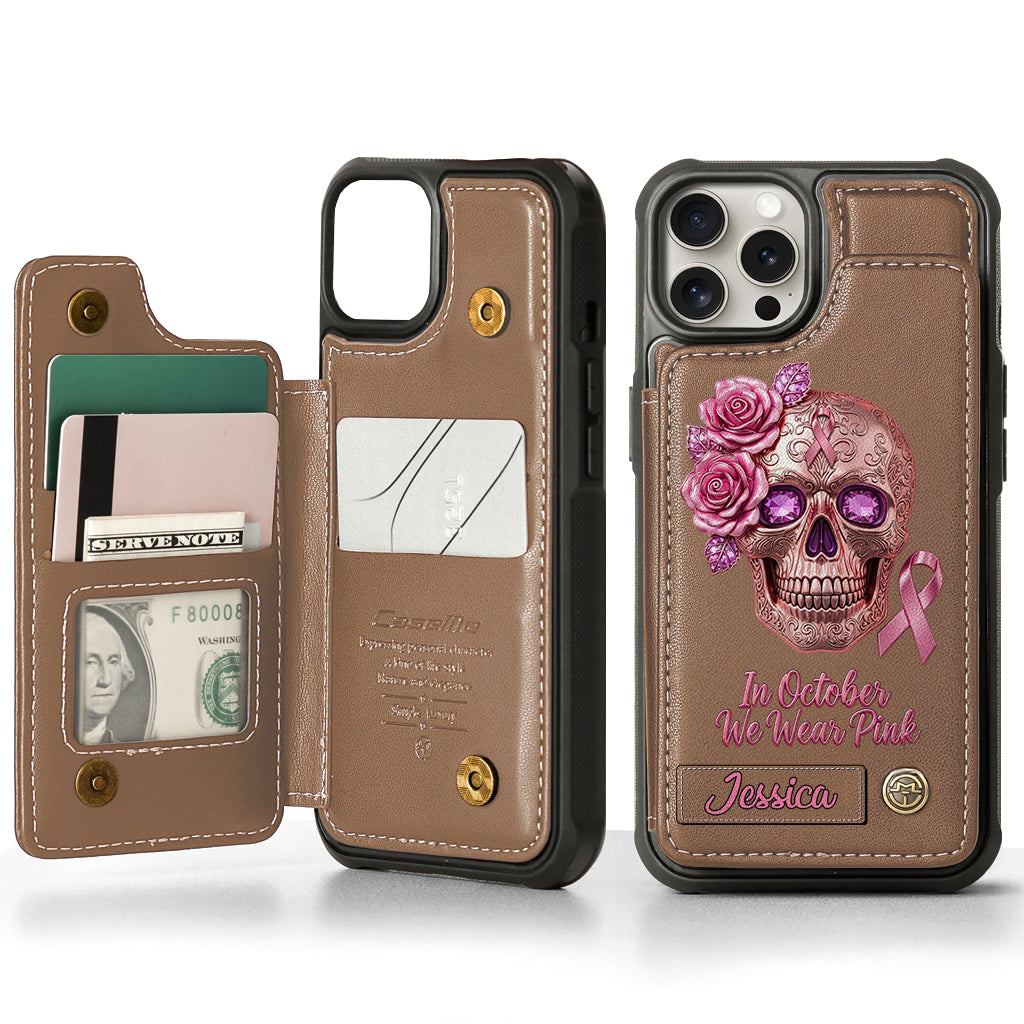 Skull And Ribbon - Personalized Breast Cancer Awareness Wallet Phone Case