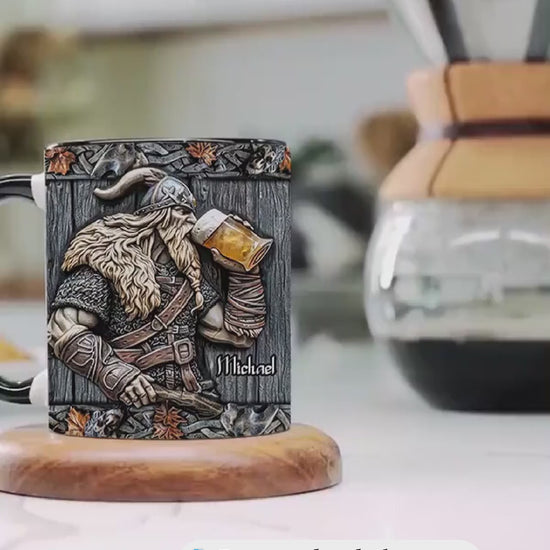 Viking Drinking Beer - Personalized Viking Accent Mug
