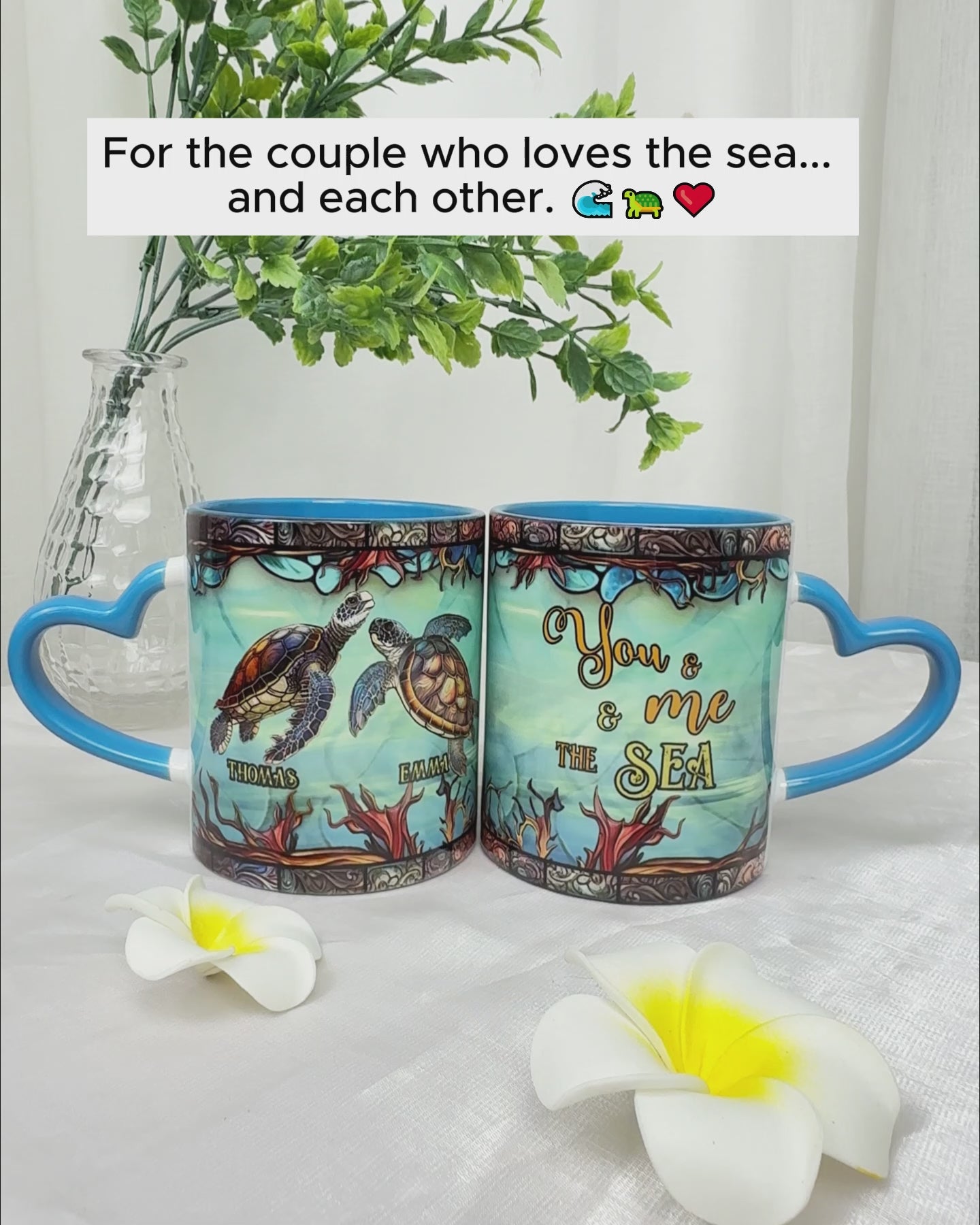 You And Me And The Sea - Personalized Turtle Heart Handle Mug