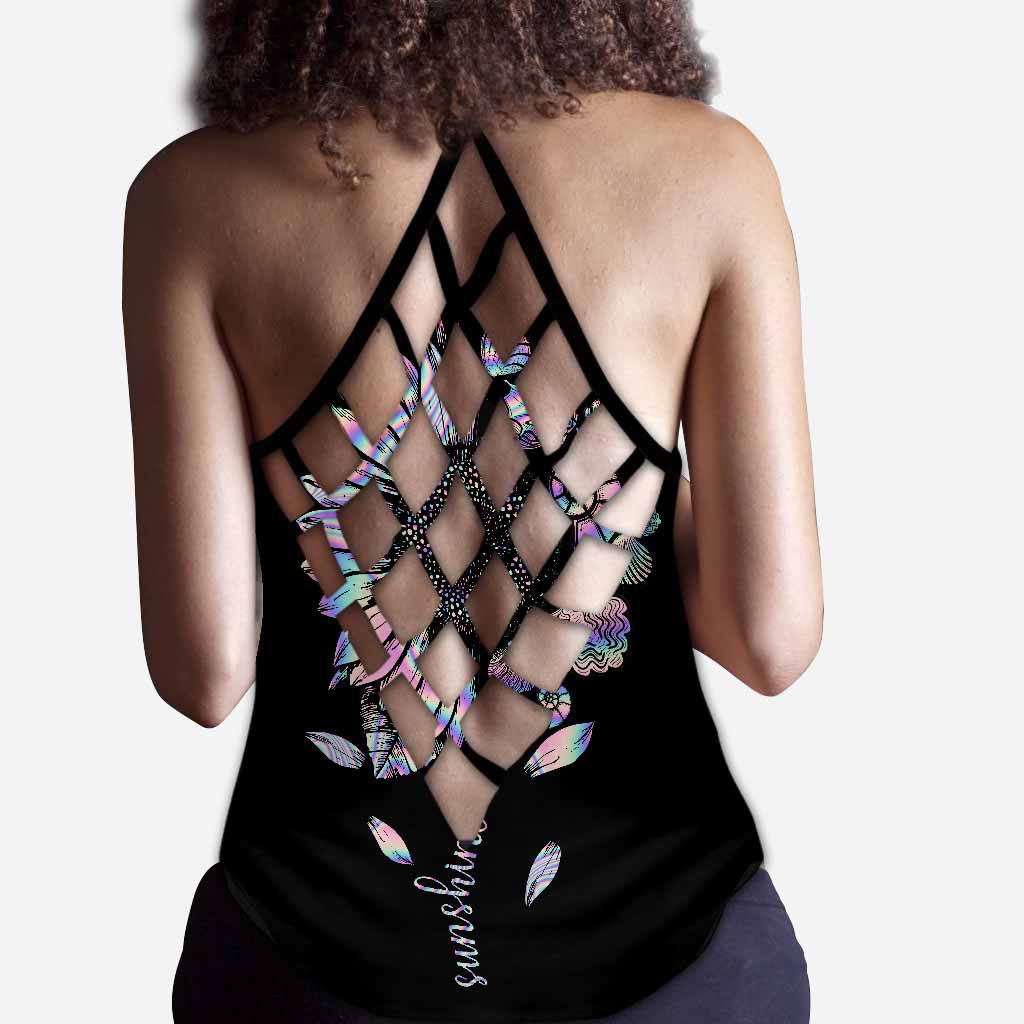 Premium Cross Tank Top: Back lattice is made of triple-layered black stretch fabric and is oversewn (so it cannot be printed)