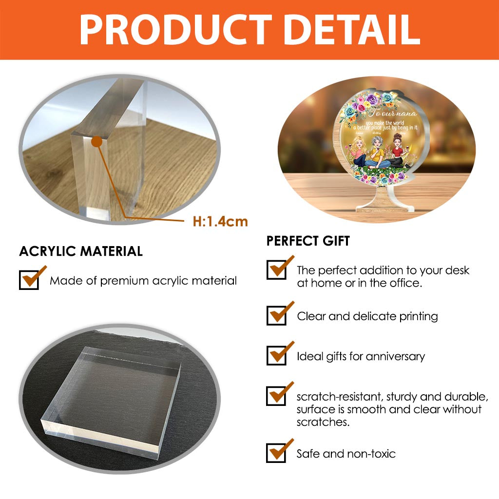 You Make The World A Better Place - Gift for mom, grandma, daughter, son, granddaughter, grandson, dad, grandpa, aunt, sister, friend - Personalized Custom Shaped Acrylic Plaque